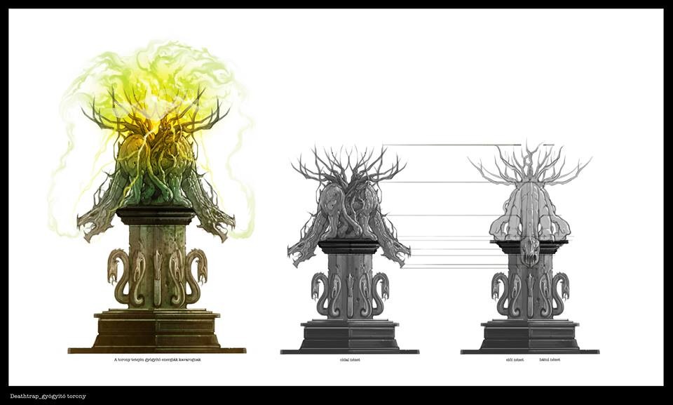 Fans of The Incredible Adventures of Van Helsing will feel right at home, as Deathtrap is built with the same graphics engine as the Van Helsing franchise. Where in Van Helsing players had a modest yet limiting selection of traps and defense towers to chose from, Deathtrap aims to expand these devices with more unique options. Towers are generally designed to attack enemies from afar, while panels cause serious issues for monsters walking over them. Panel actions range from spikes of death or the summoning of minions to fight off the hoard.