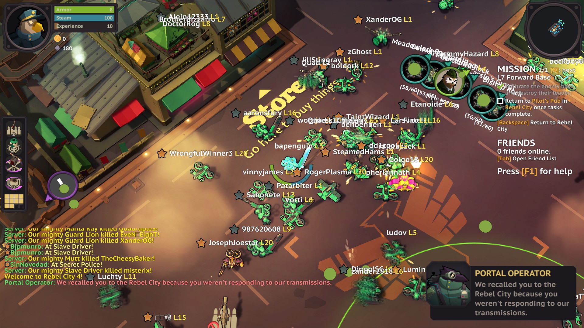 Steambirds Alliance is one of those co-op games that is on the cusp of doing something new. It's not quite a co-op game in the traditional sense, it's an "open world" MMO twin-stick shooter that is completely PvE. But there's no partying up, there's no level cap, and there's certainly no shortage of green space ships. Did I mention it's a rogue-like too?