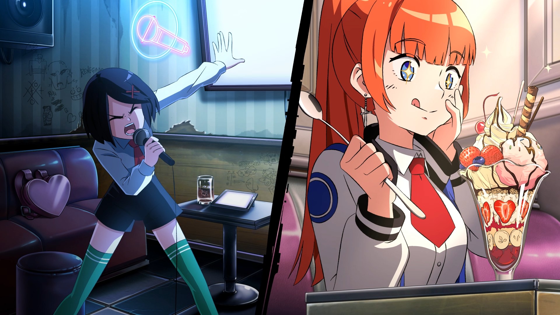 For the RCG2 intro song, I co-wrote the lyrics with RCG’s lead musician, Megan McDuffee, and Megan wrote and produced the music. Since this was the second completely original RCG game, we decided that a duet would be appropriate, so we had Cristina Vee (our series VO director, who also sang the RCG1 theme) duet with Megan (who sang the RCG Zero intro). As with both of those theme songs, the lyrics are intentionally very silly (like the game’s dialog) and Cristina and Megan are effectively channeling the personalities of Misako and Kyoko in the song. RichaadEB contributed wicked lead guitars again, and there’s actually a music video for this theme (featuring all three of them) coming soon.