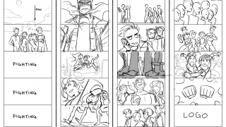 Once we had the song done, we teamed with Mariel Cartwright of Future Club to produce storyboards for the intro, based on what myself, Bannon Rudis (RCG2 director), and Colleen Fannin (RCG2 producer) wanted to highlight from the game. RCG2 is all about revenge taken by the Sabu family for the events of RCG1, so we wanted this intro to put Ken, Sabu, and the new bosses front and center. Once we had storyboards we liked, Mariel produced an animatic video, which is basically the storyboard frames with minor animation timed to the song.
