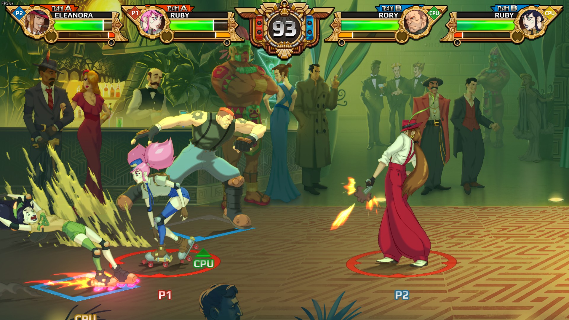 - 2v2 Action Packed Brawls – Four players choose from a roster of 10 dynamic playable characters and battle it out simultaneously online or offline!