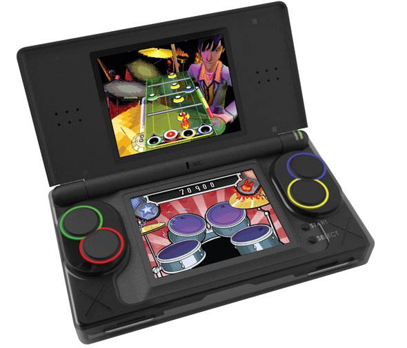 It's like deja vu all over again. Band Hero has been announced for the Nintendo DS via press release. Wait a minute, you say. The DS has a microphone built in, and the Guitar Grip has been out for a while now. How are folks supposed to play the drums? There's a miniaturized and likely finger cramping attachment coming that will allow just that. The aptly named Drum Grip (which you don't really... you know, grip) will let you pretend to play the larger pretend drums you have back home, while you're on the go!
