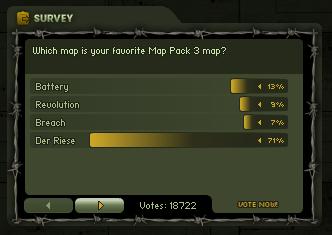 If you sit back and look at the Nazi Zombies mode as a whole, it's pretty amazing the diversity that Treyarch has managed to pack into four maps. Each one has its own appeal, and even the original Nacht der Untoten holds plenty of replayability despite being expanded upon for the last ten months. Der Riese is wildly popular right now, taking 71% of the current CallofDuty.com poll, which asks gamers to choose their favorite map in Map Pack 3. Considering that Map Pack 3 is in my opinion the most brilliant three maps in the entire versus mode, the poll is shedding tons of positive light on Der Riese.