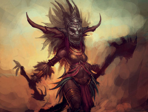 The last of the genders for our Diablo 3 characters have been revealed, this time the female version of the Witch Doctor graces us with her creepy presence. So far we've seen the Wizard, Monk, and Barbarian. There's still one entire class that's yet to be revealed for the game, both male and female versions. Along with the above concept art we've received a fresh batch of screenshots as well.