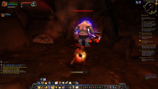 I quickly found Pherbear within the world and soon we were off on our quest. Would we save some damsel in distress? Perhaps hunting some Orcs? Defending the lands of Azeroth from impending doom? No...our quest was simply to kill 10 rats (10 Troggs, but you know... rats. - Mike). Well kill 10 somethings - they may as well have been rats. Apparently there’s a real big problem in the world where creatures just spawn at a rate faster than two rabbits on spring break can put out. So everyone and their brother needs you to kill sets of 10 creatures as fast as possible. With a good co-op buddy at my side, our workload was cut in half, and in no time flat we were leveling our characters up with maximum pleasure.
