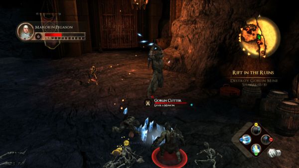 Finally any of your special abilities can be charged up by holding down the button (and making you vulnerable to attack). While playing the wizard character I utilized an ice storm spell that worked pretty well on single enemies, but holding it down till fully charge unleashed a devastating attack that held back the goblin hordes we were facing.