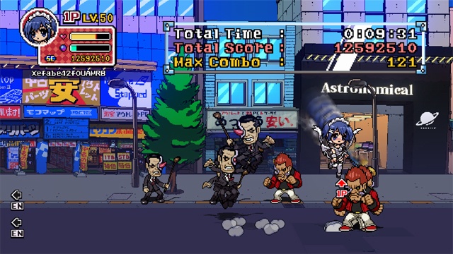 Though it might look a lot like Scott Pilgrim, Battle Grounds seems to draw a lot of gameplay inspiration from Guardian Heroes. Instead of freely moving up or down as with most brawlers, players and enemies are confined to two horizontal planes. The protagonists level up and get stronger as they fight, providing that addictive mix of RPG elements that we all crave. Another similarity: the game's 4-player competitive Battle Ground mode resembles Guardian Heroes' frantic Versus mode.
