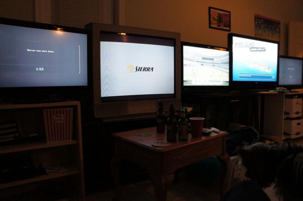 some pictures of my setup. 10 arcades / 10 xbox 360s / 10 tvs. i have it setup 5 in one room and 5 in another so team based games work the best.