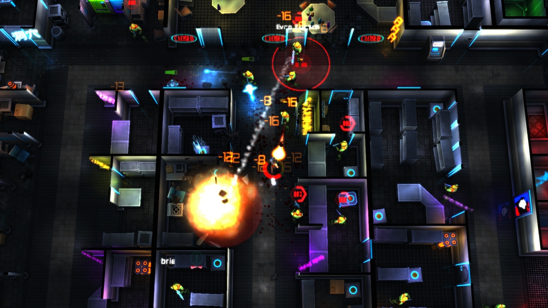 Sampo: The environment is your friend in Neon Chrome – you should use the walls as cover and make sure you have a plan when you attack a larger group of enemies. You can also surprise the enemies by going through the walls or simply walking up to them from behind if you find a nice route. You should also keep an eye on the reload indicator to time your attacks especially if facing an enemy with significantly higher power level.