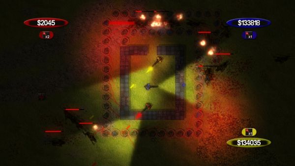 The formula for Murky Horizons is something like this: take a healthy dollop of twin stick shooter (think Zombie Apocalypse), mix thoroughly with a "build your own maze" tower defense game (such as Desktop Tower Defense), and add in a hint of the "stay in the light or die" mechanic from a few levels in Gears of War. It may sound like an odd conglomeration, but I was pleasantly surprised by the end result.