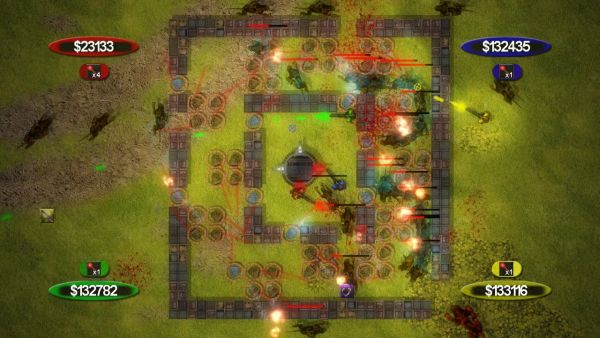 Up to four players, local only, can play at the same time. The cooperative elements are solid, and you'll often find yourself and your friends teaming up at choke points, covering each other's backs. Detracting slightly from the co-op feel is the fact that each player has their own personal reserve of money; I'd have like to have seen a shared stash, or at least the ability to lend money if needed, especially early on when towers are very expensive. Another minor quibble is the fact that only a wall or tower's builder can sell it, which caused some issues with building the perfect maze. Thankfully, the waves are not continuous, so you can take a breather and coordinate as needed between rounds.