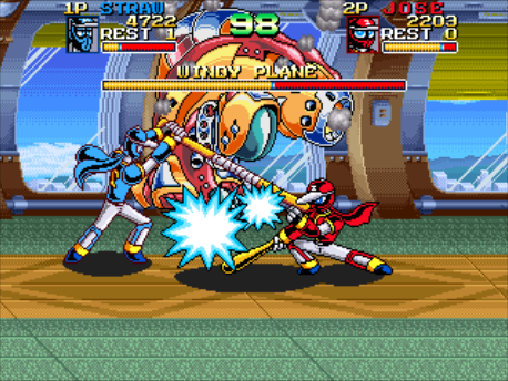 Bosses are equally as trippy, ranging from an anthropomorphic biplane (fought in the huge interior of another airplane), a cyborg alligator with a tail that fights on it's own when cut off, and the "Ghost Buffalo", a collection of haunted house decorations animated by a poltergeist into a bull-like form. It's easily the strangest set of enemies in any brawler I can remember; think the dream sequence level in The Simpsons, but for an entire game, and it's Honus Wagner who's having the dream.