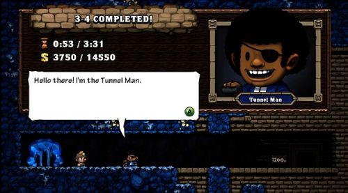 Oh yes, there are short cuts. At the end of each area, in the single player game, the Tunnel Man appears. He'll ask you for a few items, and you'll be hating life if you don't have them. He requires several items to unlock each shortcut, so you'll need to complete each area multiple times. Since progress isn't saved in co-op play, he never appears in co-op games. That's right. After my wife and I completed an area like the Mines or the Jungle, I would have to tackle it again on my own (several times over) to unlock the short cut. Not cool, Spelunky, not cool. The best thing about the short cuts is that after I opened them up in single player we could use them cooperatively. That helped. A lot.