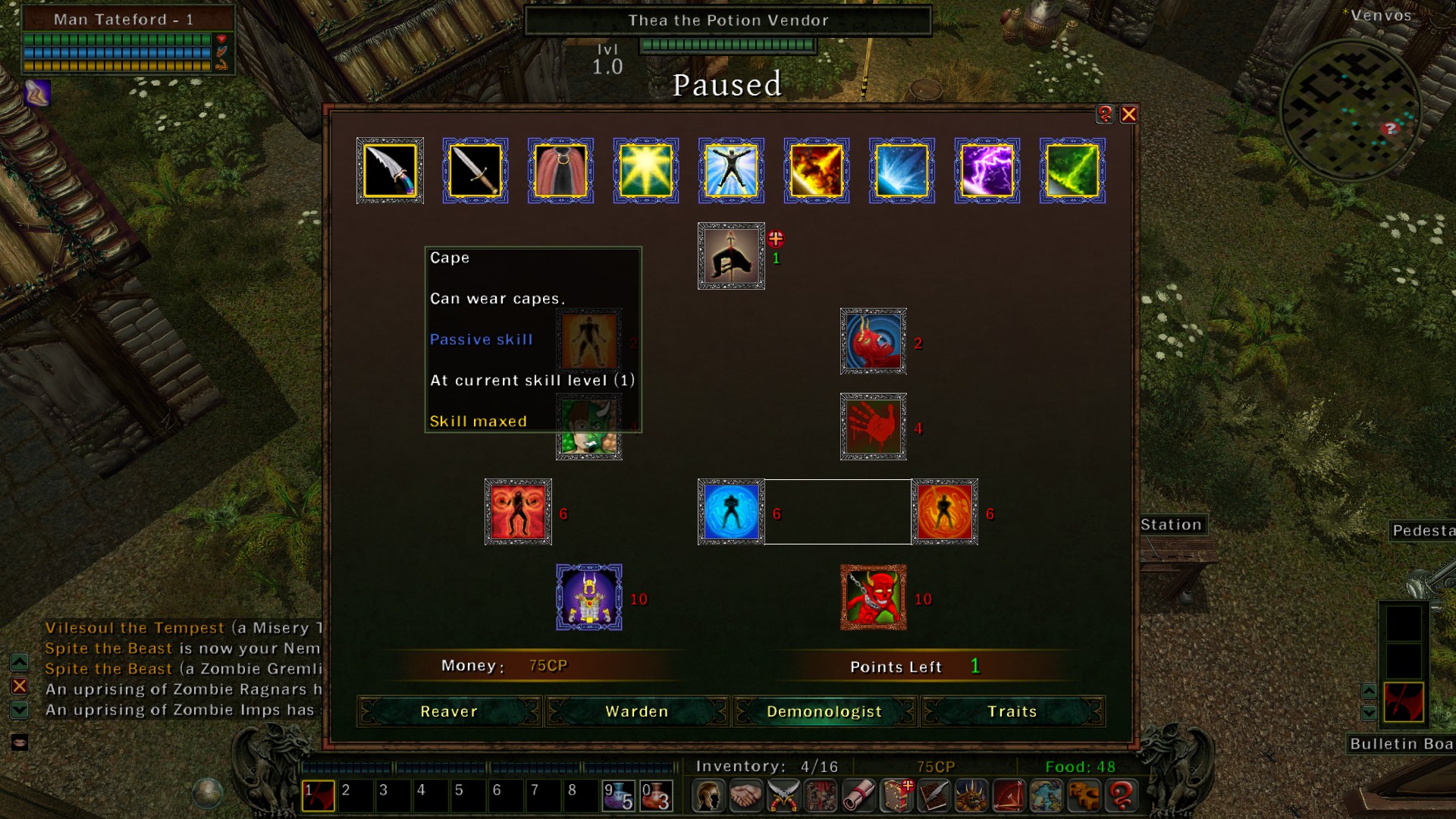 The one aspect of Zombasite I still haven’t quite gotten down, though, is the skill tree. Like many ARPGs, the character class you choose determines a few key elements for your in-game avatar, such as weapon and armor proficiencies, and passive bonuses (like increased fire resistance for every point you put into your spirit attribute). Unlike other ARPGs, however, it’s not as clear what constitutes a “good build” and acquiring the skills necessary for that isn’t as easy as choosing one every time you level up.