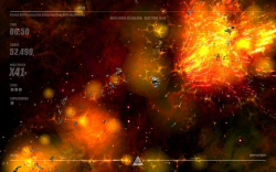 The rest of the song; the beats, melody, and bass, cause waves of asteroids and ships to be sent your way. Consecutively kill the bad guys to pick up multipliers and increase your score, and maximize how well you do on a level. The enemies the game spawns are few, with around six or seven different styles of ships - including two bosses. These boss ships are huge, and sometimes come in pairs, though predictably they seem to be launched after a lull in any of your music. Killing any of these ships results in some gorgeous explosions, full of color and particles. Every game has an epileptic warning before it in regards to seizures, this is one game I can see it being a real problem with.