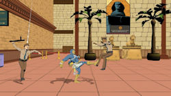 The levels in Comic Jumper are somewhat repetitive, which, like the difficulty, is very old school. But there are several things that mix it up just enough to keep it interesting. A few punching and brawling sections, as well as sequences where the action goes over the Captain’s shoulder, much like a lightgun game are welcome changes of pace. The shifting art style helps, too, but the real reason you’ll keep playing even when the game gets a bit tedious is the humor. I cannot recall ever playing a game as outright hilarious as Comic Jumper. There are many self-referential bits that will have you laughing out loud, and the comic timing between Captain Smiley and Star is wonderful. It’s easily the most enjoyable aspect of the game. I highly recommend Comic Jumper; it is one of the finest downloadable titles I’ve ever played.