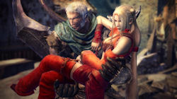 In recent years the hack ‘n’ slash genre has moved on from the glorious three button mashing of Goldenaxe, and entered the realms of ballet with blades. The later Devil May Cries and Bayonetta allow for beginners to pull off some good looking moves, whilst those that choose to master the controls can pull off some awesome combos. In comparison, Knights Contract looks and feels like it has been taken from the early Playstation 2 era and given a quick High Definition shine. I’m happy with flat textures from updated games such as Beyond Good and Evil, but in a full price game this is unacceptable. Although the main models of Heinrich and Gretchen look decent, the enemies look so ugly that if they fell out of the ugly tree even the branches would refuse to touch them.